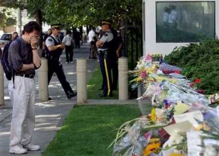 TRIBUTE TO THE UNITED STATESLittle coverage was given to a remarkable editorial by Gordon Sinclair, a Canadian tv commentator. His remarks as printed in the Congressional Record.Below the commentary are photographs from around the world, and the movie hotlink. America: The Good Neighbor. "This Canadian thinks it is time to speak up for the Americans as the most generous and possibly the least appreciated people on all the earth. Germany, Japan and, to a lesser extent, Britain and Italy were lifted out of the debris of war by the Americans who poured in billions of dollars and forgave other billions in debts. None of these countries is today paying The interest on its remaining debts to the United States. When France was in danger of collapsing in 1956, it was the Americans who propped it up, and their reward was to be insulted and swindled on the streets of Paris. I was there. I saw it. When earthquakes hit distant cities, it is the United States that hurries in to help. This spring, 59 American communities were flattened by tornadoes. Nobody helped. The Marshall Plan and the Truman Policy pumped billions of dollars into discouraged countries. Now newspapers in those countries are writing about the decadent, war mongering Americans. I'd like to see just one of those countries that is gloating over the erosion of the United States dollar build its own airplane. Does any other country in the world have a plane to equal the Boeing Jumbo Jet, the Lockheed Tri-Star, or the Douglas DC10? If so, why don't they fly them? Why do all the International lines except Russia fly American Planes? Why does no other land on earth even consider putting a man or woman on the moon? You talk about Japanese technocracy, and you get radios. You talk about German technocracy, and you get automobiles. You talk about American technocracy, and you find men on the moon - not once, but several times - and safely home again. You talk about scandals, and the Americans put theirs right in the store window for everybody to look at. Their draft-dodgers are not pursued and hounded. They are here on our streets, and most of them, unless they are breaking Canadian laws, are getting American dollars from ma and pa at home to spend here. When the railways of France, Germany and India were breaking down through age, it was the Americans who rebuilt them. When the Pennsylvania Railroad and the New York Central went broke, nobody loaned them an old caboose. Both are still broke. I can name you 5000 times when the Americans raced to the help of other people in trouble. Can you name me even one time when someone else raced to the Americans in trouble? I don't think there was outside help even during the San Francisco earthquake. Our neighbors have faced it alone, and I'm one Canadian who is damned tired of hearing them get kicked around. They will come out of this thing with their flag high. And when they do, they are entitled to thumb their nose at the lands that are gloating over their present troubles. I hope Canada is not one of those." To review our 911day Open Letter to US Congress and the 911day Movie: Letter to Congress Oh, America! Remember 911day. Keep their memories alive by LIVING, DOING more!